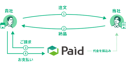 Paidにお申し込みいただくと、当社と初回から後払いで取引が可能です。